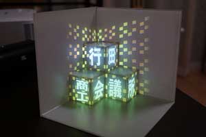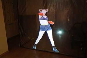![]() 透過スクリーンで空間に浮かび上がって見える映像 |